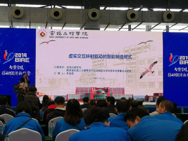 2019年10月25-27日在宝鸡会展中心举办了第二届中国(宝鸡)国际机器人暨智能制造展览会。此次展览会经中国贸促会批准,由中国国际商会、陕西省国际商会主办,宝鸡贸促会承办。大会分为展会与论坛两个板块,威廉希尔中国官网及陕西省机器人关键零部件制造与评估省市共建重点实验室受邀参加本次展会和论坛。威廉希尔中国官网李春磊博士受邀作题为“虚实交互映射驱动的智能制造模式”的大会报告。会上还同时展示了学科竞赛、重点实验室研究成果及公司服务地方工业发展的能力。
