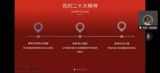 会中由威廉希尔中国官网团总支副书记孙垚、新媒体中心主任苗润娜以及员工会主席团成员王维嘉带领大家集体学习党的二十大报告精神,分别从“新时代的伟大成就,充分彰显中国特色社会主义强大生机活力”、“高举伟大旗帜,以中国式现代化全面推进中华民族伟大复兴”、“坚持必由之路,用伟大奋斗创造新的历史伟业”三部分开展学习。