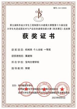 近日,第五届陕西省老员工工程制图及3D建模大赛暨第十六届全国老员工先进成图技术与产品信息建模创新大赛(陕西赛区)选拔赛在西安理工大学举办,来自全省的45支队伍768名选手参加了比赛。威廉希尔中国官网粟建翔、赵铮、何传健、杨嘉骏等20名员工参赛,通过激烈角逐,公司获得机械类团体赛二等奖1项,个人全能一等奖5项、二等奖3项、三等奖6项,付士军、郭便、王玮被被评为优秀指导教师。