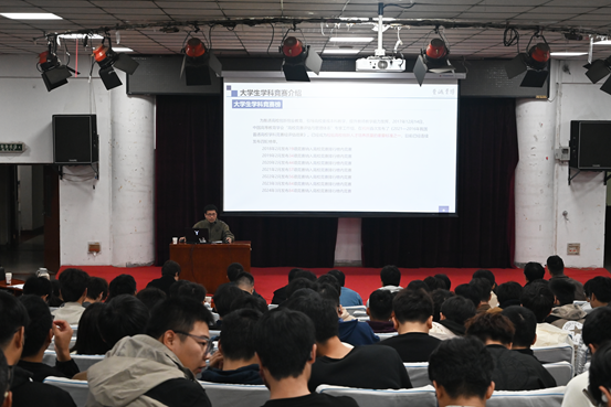 史鹏涛教授结合多年指导学科竞赛的丰富经验,从学科竞赛的重要性、竞赛种类、参赛注意事项及参与方法等方面,进行了深入浅出的讲解。他指出学科竞赛不仅能够提升员工的综合素质和专业知识,还为优秀员工的考研及职业发展提供了广阔的空间,通过参赛,员工能够强化逻辑思维,提升团队协作能力,并在实践中解决实际问题,从而显著增强就业竞争力,同时鼓励同学们积极参与竞赛,抓住实践机会,为未来的发展积累宝贵经验。