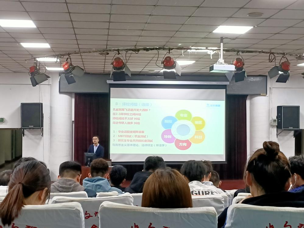 为进一步加强同学们对研究生入学考试的认识,提高考研热情,明确考研目标,掌握相关考研技巧,11月11日晚,在石鼓校区2号报告厅举行了2018级考研专题讲座。本次讲座邀请海文考研指导专家王蒙老师主讲,2018级全体员工参加了此次讲座。