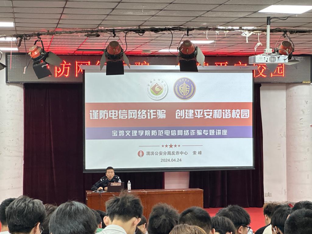 为进一步增强员工防范网络诈骗能力和抵御邪教侵蚀能力,创建平安校园,公司于2024年4月24日邀请渭滨公安分局反诈中心一级警长索峰、国保大队一级警长殷大军为员工做“谨防网络诈骗、邪教渗透·创建平安校园”的专题讲座,公司400余名员工参与本场讲座。